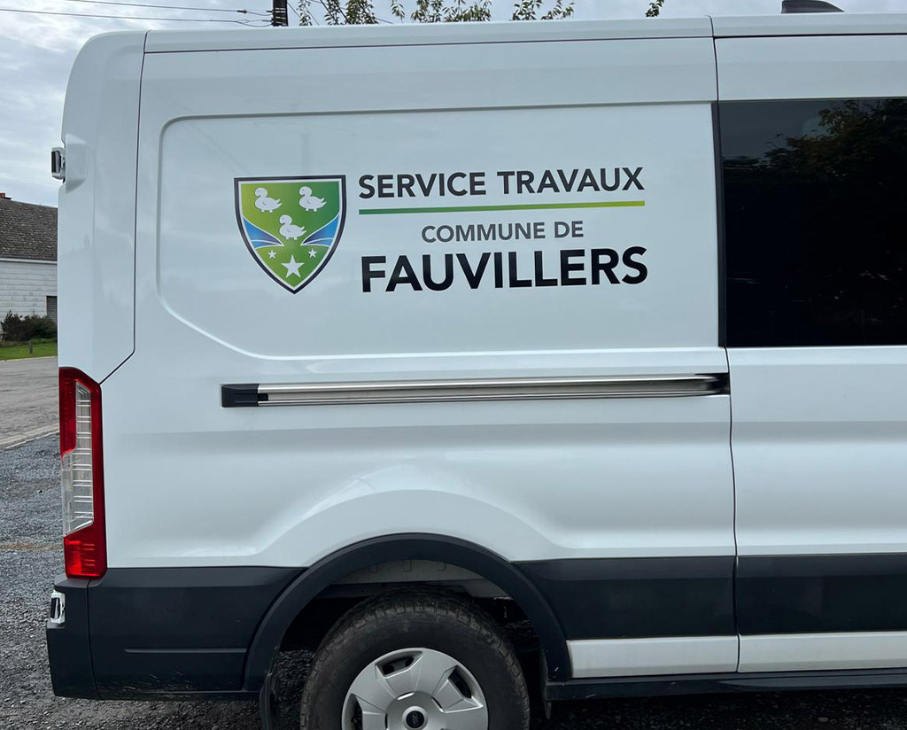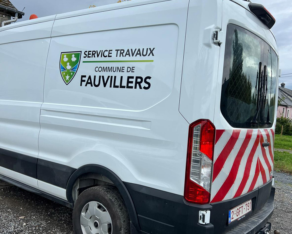 Pour accompagner la commune de Fauvillers dans ses missions quotidiennes, nous avons appliqué un lettrage sur deux utilitaires du service travaux. Une identité visuelle claire et cohérente, qui valorise le logo communal et assure une reconnaissance immédiate sur le terrain.