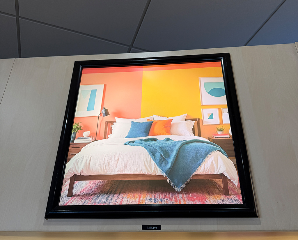 Fourniture et pose de lettres 3D reproduisant le logo, d’une enseigne lumineuse, ainsi que de visuels photographiques rétroéclairés. Ce projet a été conçu pour assurer une visibilité optimale au sein du showroom, tout en valorisant l’identité visuelle grâce à un éclairage particulièrement soigné.